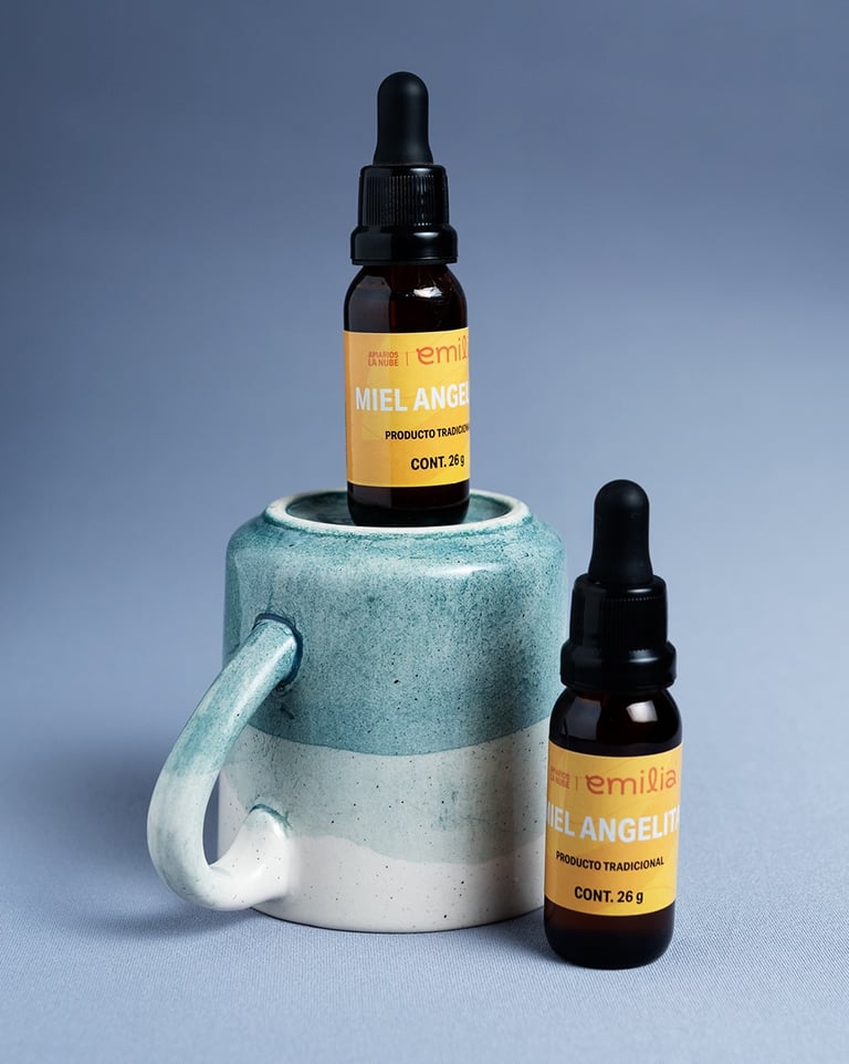Esta miel proviene de la abeja angelita, una especie nativa de Colombia, cuidadosamente criada. Su recolección respeta las prácticas tradicionales que han sido parte del saber popular durante siglos. Esta miel representa un vínculo con las raíces culturales y el conocimiento natural del territorio.