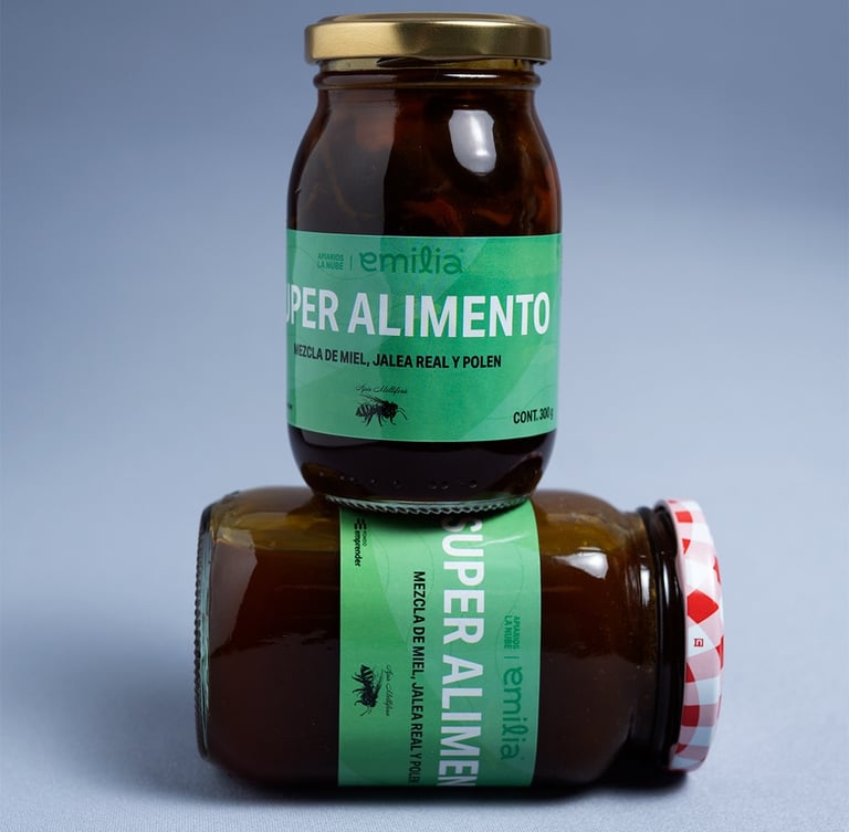 El Super Alimento es una combinación energética y nutritiva que une tres super ingredientes de la colmena (miel, jalea real y polen).Este producto fusiona lo mejor de la colmena para ofrecer nutrición de alta calidad. Pensado como una solución práctica para el bienestar diario, nace del respeto por las abejas y del deseo de compartir sus bondades de forma responsable y consciente.